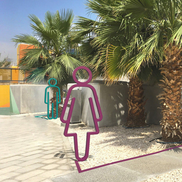 I also recently worked on a project for an outdoor activity park. The landscape architects have created an amazing space with huge concrete blocks repurposed from the construction of the canal, next to the park. Translating the urban, fun and edgy identity of the space into wayfinding designs invited lots of creativity. Inspired by Instagrammable walls and selfie moments, we created human-scale pictograms.