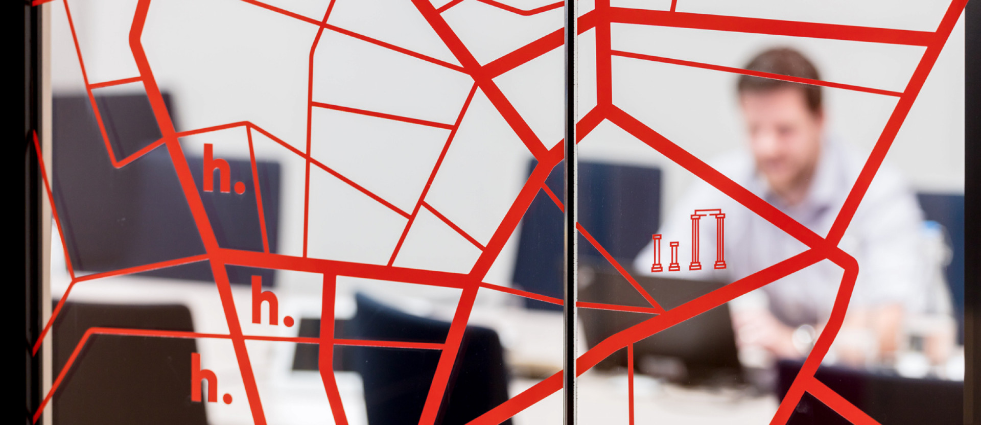 The main aim is to provide effective navigational designs for large, complex environments. We create a graphic language, consisting of typography, iconography, colours, patterns, symbols, signage, maps, small graphics, environmental graphics and more. We want to create inspirational but essentially functional spaces — spaces that are memorable and inviting but also easy to navigate, where information is given in the clearest way.