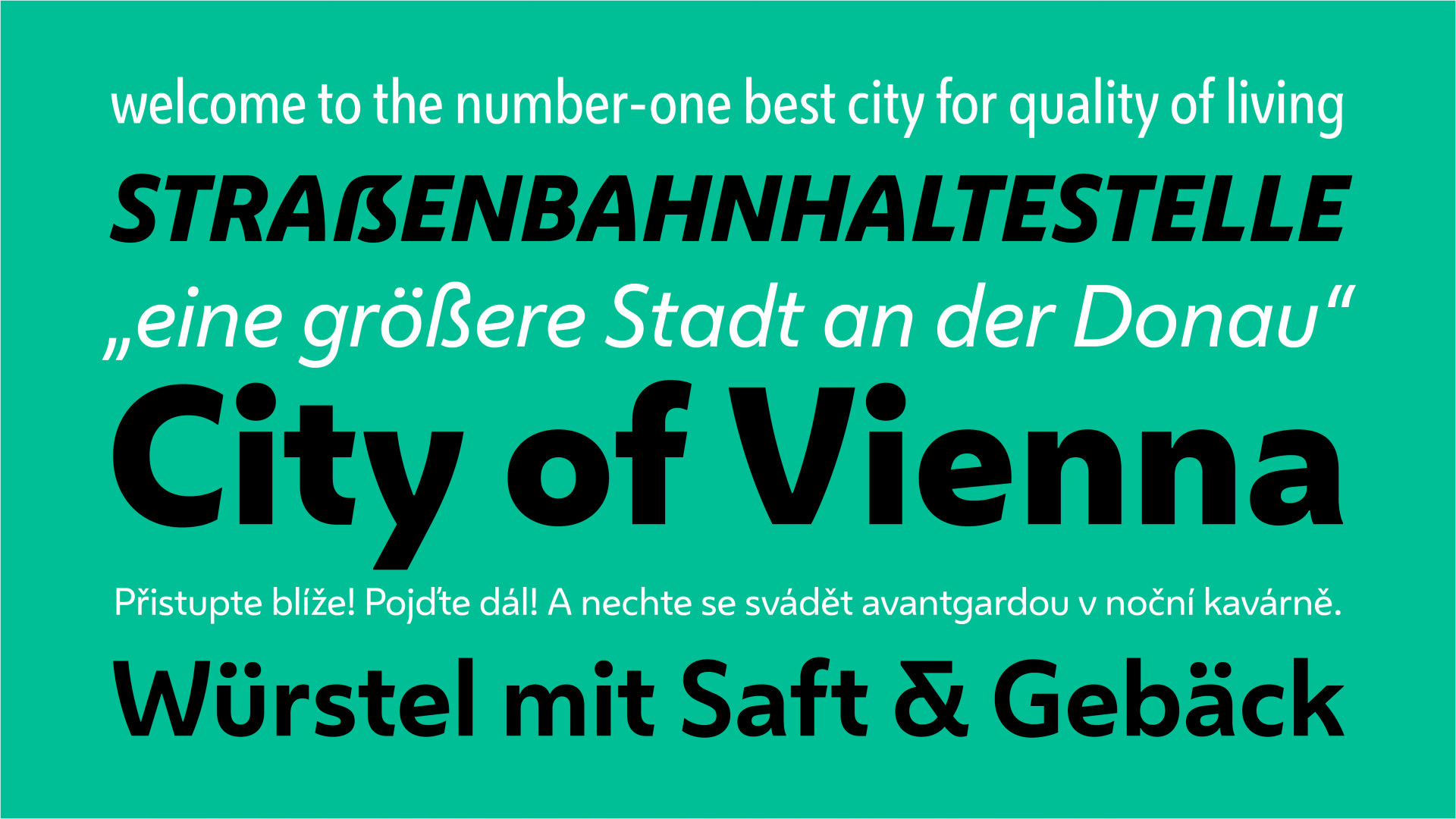 Riccardo: I think that a typeface has the power to unify the visual language and the flavour of the communication across a location. For example, the typeface we created for the city of Vienna is very much intended to express the flavour of the city for locals and visitors alike. Similarly, the New York subway’s use of Helvetica (not us, alas!) is so well-established that it actually feels like a part of New York.