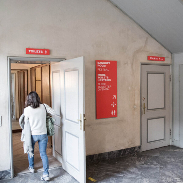 The team completed and digitised a typeface found in the museum's archives originally designed by Naur Klint and integrated a bold colour scheme to modernise and compliment the typeface. The team successfully enhanced navigation while maintaining the institution's cultural identity. This project combined branding with a comprehensive wayfinding strategy, creating a ‘red thread’ throughout the building to help guide visitors with a bold navigational approach.