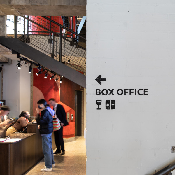 Alongside the signage, large-format images of past and present productions were directly pasted onto the building, like those on a billboard. This added to the sense of intimacy as the large images filled small spaces. For future productions, we utilised simple banners around the front desk, which can be easily changed as needed. We also created a new donor board – honouring patrons by adding their names to the wall in the reception area, taking its cue from the theatre’s surrounding aesthetic.