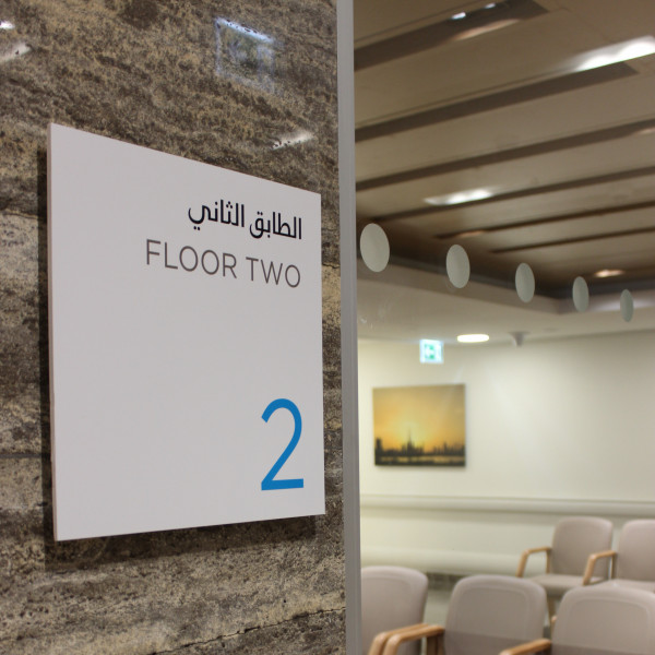 Our overall focus on simple, clear, and straightforward directions with messages delivered at the right locations in English and Arabic means everyone using the hospital has a clear and consistent user experience.