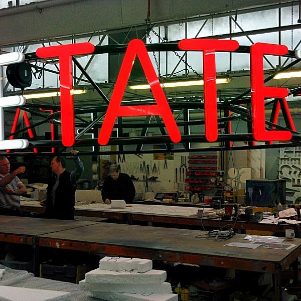 We were commissioned to help bring to life the idea of a ‘typographic chandelier’ as a new gallery entrance centrepiece for Tate Liverpool. Through extensive 3D modeling, technical drawings, on site testing and close collaboration with the architect and structural engineer, we delivered an elegant solution that worked. The striking result – a chandelier that seamlessly appears to hover above the entrance – has greatly improved visibility and navigation within Albert Dock, and expresses the creative individuality of the Tate. We also helped enhance brand presence with hand painted lettering directly applied onto the brickwork on the outside of the building.